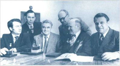 Лауреаты Государственной премии СССР: И. С. Никоненко, Е. Н. Алтунин, В. Д. Чернышев, Г. И. Ширенко |