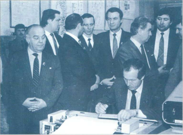 H. С. Никоненко, А. И. Наливайко принимают секретаря ЦК ВЛКСМ В.М. Мишина. |