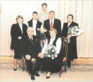 Геологическая семья. Слева направо: (сидят) Лев Иванович с женой; (стоят) дочь Ольга, внуки Михаил и Иван, зять Сергей Михайлович Данилкин, дочь Наталья