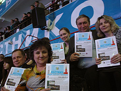 Только очень жаль, что мало было членов землячества, пришедших поболеть за нашего земляка Евгения Назарова. Ну а те, кто присутствовал, старались изо всех сил поддержать его, размахивая флагом, журналами «Вестник», скандированием – «Женя, Женя!!...».