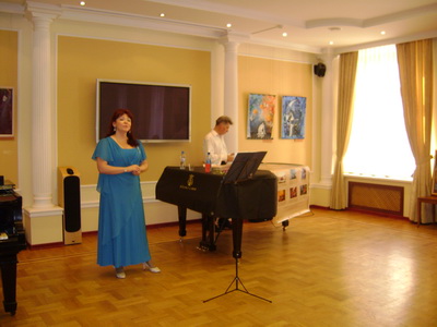 В продолжение вечера состоялся концерт нашей землячки Ларисы Даниловой, композитора, обладательницы редкостного по красоте и тембру звучания голоса – лирико-драматического сопрано, автора многих ярких, мелодичных песен на стихи А.С.Пушкина, С.А.Есенина, Н.М.Рубцова. Родилась она в Тобольске, на родине русского композитора и героя Отечественной войны 1812 года А.А.Алябьева.