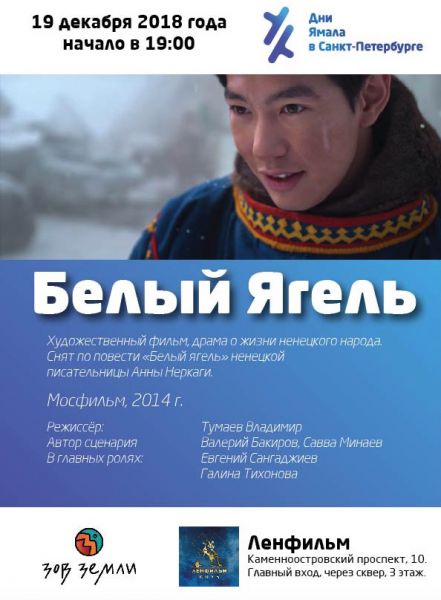 Представительство Ямало-Ненецкого автономного округа в Санкт-Петербурге совместно с проектом «Зов Земли» приглашает всех желающих петербуржцев и ямальцев познакомиться с кинолентой «Белый ягель».