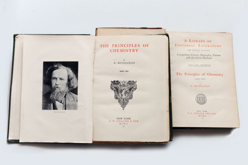 В музее ТИУ хранятся четыре прижизненных издания учебника «Основы химии»: три изданы в России и одно — в Америке (1902-1903 гг.). В экспозиции есть марки с портретом русского учёного, выпущенные в разные годы и в разных странах. Одна из них, к примеру, вышла в 2013 году в африканской Республике Кот-д’Ивуар. О всемирном признании Менделеева говорит и пятидолларовая серебряная монета, выпущенная на островах Кука в 2012 году. На ней с одной стороны — изображение королевы Елизаветы II, с другой — Дмитрия Ивановича Менделеева.