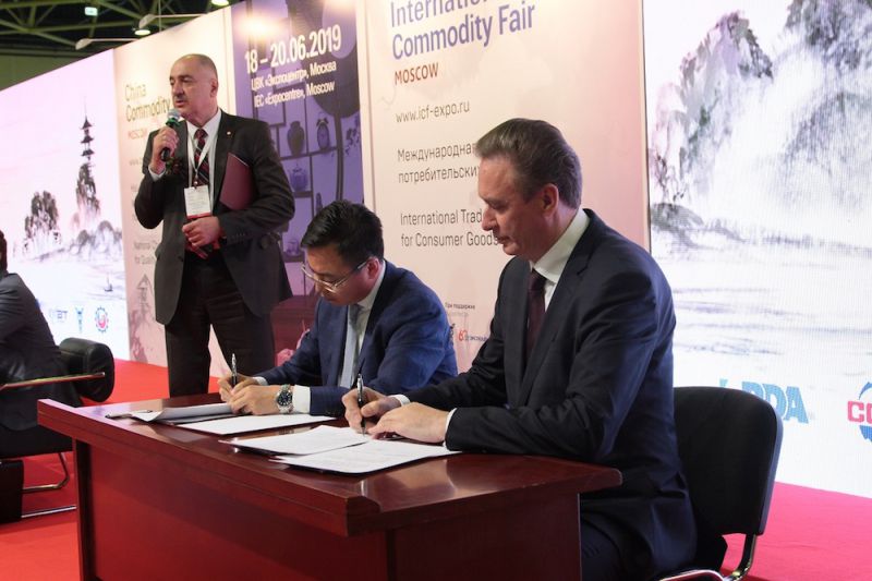 В завершение официальной части состоялось торжественное подписание Меморандума между генеральным директором Международного Совета Экономического Сотрудничества Регионов Ринатом Голда и генеральным представителем Китайского Комитета содействия международной торговле в Российской Федерации и странах СНГ господином Сюй Цзиньли.
