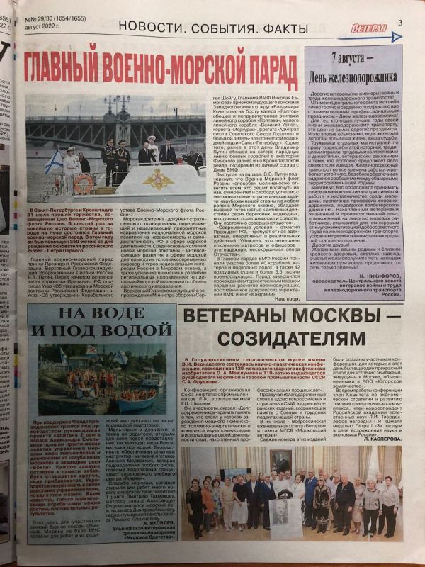 В их числе - всероссийская газета "Ветеран" (гл.редактор В.Н.Овсянников), и газета МГСВ "Московский ветеран" (гл.редактор А.А. Климова).