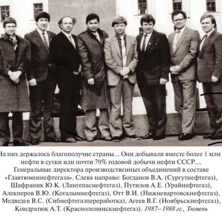 «Это было очень непростое время для «Нижневартовскнефтегаза». Темпы отбора нефти были запредельными, резко начала расти обводненность скважин, катастрофически не хватало капвложений на ввод новых месторождений, которые находились за сотни километров от Самотлора и Мегиона, значительно снизилось качество нового нефтепромыслового оборудования, снижались объемы бурения и ввод новых скважин, кратно возросла аварийность трубопроводных систем, особенно Самотлора».