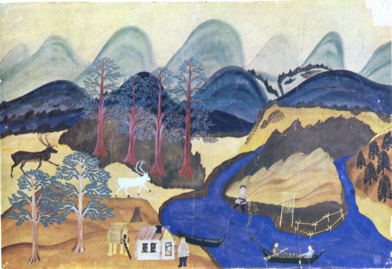 «В моем краю зима и лето – соседи. Еще горы стоят летние, земля красная – она покрыта ягодами и только листья на деревьях кое-где пожелтели. Но вдруг пришел мороз – и реки застыли. Среди лета лежат зимние реки. Снега нет, лед прозрачен, можно увидеть уснувших рыб…».