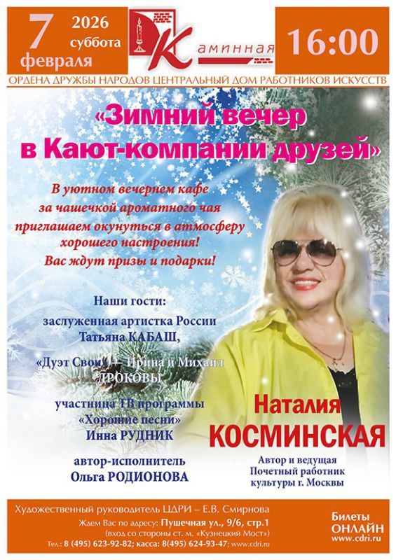 Наталия Косминская вновь приглашает земляков в Центральный Дом работников искусств.