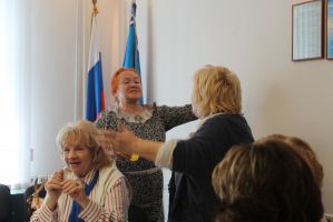 Талант общения с людьми Наталии Косминской, которых она любит всем сердцем, таким же добрым как у Людмилы Русаковой, отметили земляки и гости. Ведущая вручала за столом сувениры от руководства нашего землячества в связи с событийными датами женщин. Я, например, получила в подарок красные бусы и тут же продемонстрировала, как они подходят к моему красному пиджаку! Вкусы и других женщин были также угаданы благодаря Наталии и дирекции ЗСЗ.