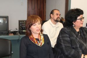 Затем ведущая представила участников предстоящего разговора: Лидию Шмаль, Тамару Афанасьеву, Юлию Коваленко, Людмилу Русакову, Ирину Аксёнову,  Елену Рачкову,  Ларису Коробову, Марину Загуменную, Татьяну Руданец и меня, Людмилу Касперову. То есть нас, представительниц ЗСЗ. И гостей: Людмилу Варфоломееву, Валентину Владиславлеву, Аллу Калинину, Ольгу Вакулинскую, Светлану Алданову, Ольгу Кузнецову, Надежду Евтюшину.