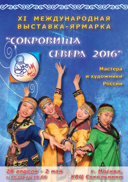 Ассоциация коренных малочисленных народов Севера, Сибири и Дальнего Востока Российской Федерации совместно с Компанией «Абориген Экспо Тур» и Союзом художников России при поддержке Совета при Президенте РФ по межнациональным отношениям, Комитета ГосДумы по делам национальностей, Министерства культуры и Федерального агентства по делам национальностей в Москве в дни весенних праздников с 28 апреля по 2 мая 2016 года проводят XI Международную выставку-ярмарку «СОКРОВИЩА СЕВЕРА 2016».