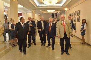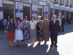 Поздравить регион с его юбилеем приехали полномочный представитель президента России в Уральском федеральном округе Игорь Холманских, губернаторы Ханты-Мансийского автономного округа Наталья Комарова и Ямало-Ненецкого автономного округа Дмитрий Кобылкин, представители руководства Курганской и Свердловской областей, а также Северо-Казахстанской области Республики Казахстан, члены нашего землячества - депутаты Государственной Думы и члены Совета Федерации Федерального Собрания РФ, председатели органов законодательной власти Тюменской области Сергей Корепанов, Югры Борис Хохряков и Ямала Сергей Харючи, ветераны тюменского ТЭКа, заслуженные и почетные работники всех отраслей и сфер деятельности региона, главы муниципальных образований, представители крупных предприятий, друзья и партнеры Тюменской области. Делегацию почетных гостей нашего землячества, первопроходцев освоения Западной Сибири возглавил председатель, член СФ ФС РФ от Ямала Юрий Неелов. Ее представителей запечатлела на фотокадрах член Совета нашей организации Лариса Коробова.