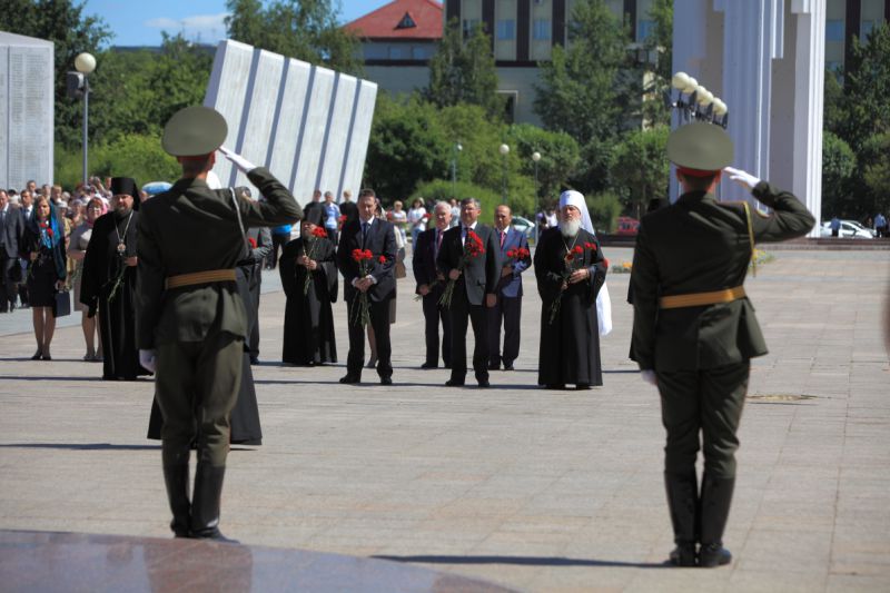 Оба эти периода, считает патриарх, потребовали от людей огромной концентрации сил, духа, и способны были на такие подвиги только духовно сильные люди. «Не случайно, - считает он, - сибирские дивизии были на острие атак во время Великой Отечественной войны. Я приехал на землю, где живут сильные, целеустремленные люди».
