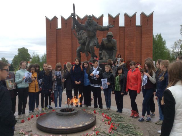 В юбилейном мае 2015 года учащиеся школы № 2067 Ново-Московского административного округа Москвы приняли участие в митинге в военно-историческом комплексе "Снегири" на 42-м километре Волоколамского шоссе, у памятника воинам-сибирякам, защитникам Москвы. Здесь в конце ноября  -  начале декабря 1941 года проходил оборонительный рубеж наших войск в битве за столицу.  Ученики  6 «Б» и 11 «А» классов подготовили литературную композицию, посвященную Великой Отечественной войне. Думали, искали, репетировали. И создали монтаж в стихах, посвященный именно воинам-сибирякам.