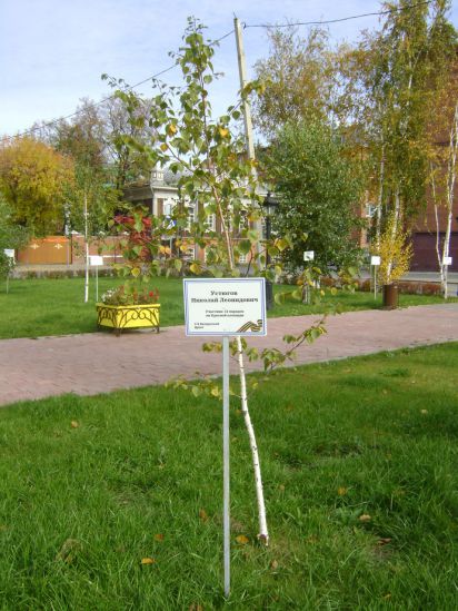 Вы – наш «Почетный земляк». Будучи в г.Тюмени в составе делегации РОО «Западно-Сибирское землячество» на дне рождения Тюменской области, Вы были приглашены на 75-летие Тюменского государственного университета, который окончили в период проживания в г.Тюмени. По случаю празднования юбилея университета его руководством для ветеранов войны была проведена патриотическая акция в честь 70-летия Победы в Великой Отечественной войне по открытию аллеи в бывшем саду Пионеров по улице Республики – ныне на площади Борцов революции. Каждый ветеран посадил березку, увековечив свое имя на тюменской земле. Возле каждой березки установлены именные таблички. Всего было посажено 70 деревьев к 70-летию области. Мы Вам сообщаем: Ваша березка растет и хорошеет!