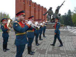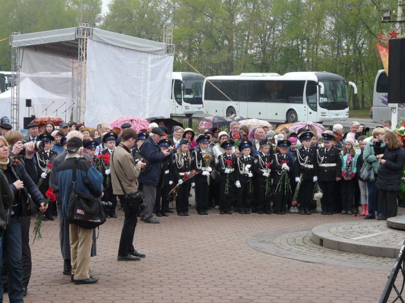Местность под символическим названием Ленино, где расположен мемориал, встретила приезжих, как долгожданных гостей: безветренной и на удивление спокойной погодой. На площади перед мемориалом расположился военный духовой оркестр с начищенными до блеска медными трубами, рядом тонкой цепочкой, окормляя прибывающих, стояли совсем дети – мальчики и девочки в красивой кадетской форме. Это приятное новшество в проведении мероприятия было с удовлетворением встречено участниками. Наша уважаемая Тамара Афанасьева не могла пройти мимо детишек в форме и завела с ними беседу.