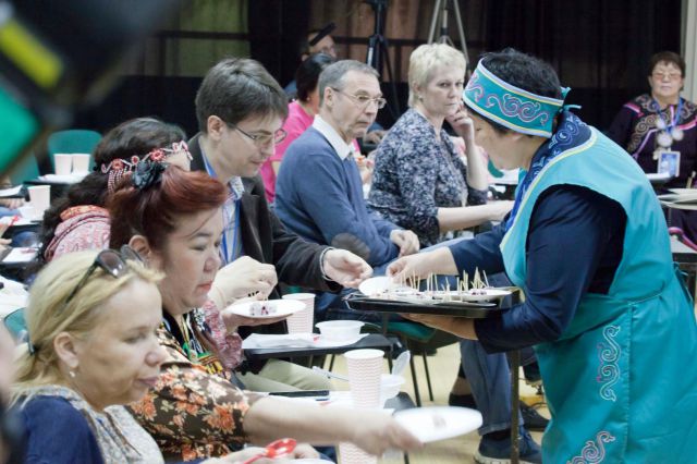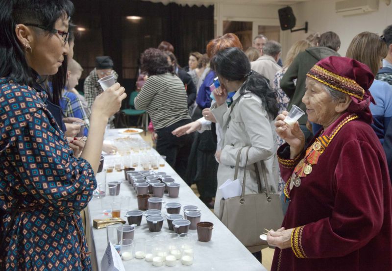Участники мероприятия имели уникальную возможность отведать продукты, внесенные в международный каталог уникальных продуктов «Ковчег вкуса» («мос», «монтак», «талкан», «няк»). Продукты «мос», «монтак» и «няк» были внесены в «Ковчег вкуса» по результатам продовольственного конкурса, проведенного конвивиумом Ковчег-Москва в рамках выставки «Сокровища Севера - 2015».