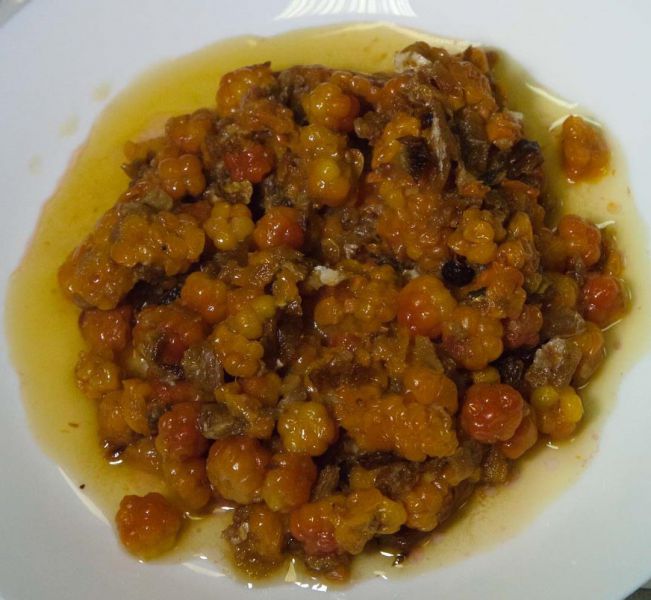 - В номинации «Сладости и выпечка» - продукт нивхов «Хорла теви» (тертый шиповник с брусникой, шикшой, рябиной и нерпичьим жиром), Сахалинская область.