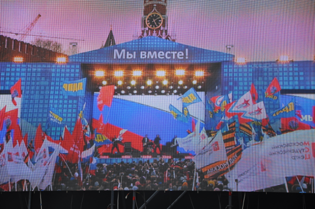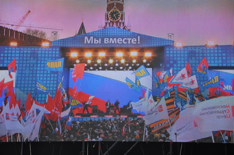 Единодушие, солидарность и гордость переполняли наши души. Тысячи счастливых москвичей и гостей столицы под флагами России приветствовали это событие. И даже не очень комфортная погода не мешала людям петь, танцевать, веселиться и радоваться. Мы гордимся единством нашей великой Родины.