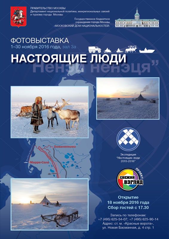 фотовыставка «Ненэй ненэця – Настоящие люди» продолжит свою работу в зале №3 Московского дома национальностей (м. Красные ворота ул. Новая Басманная, д.4, стр.1) до 30 ноября 2016г.